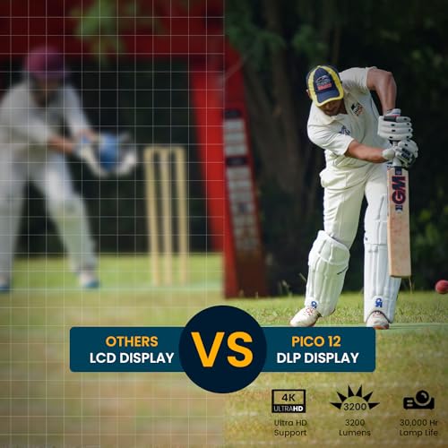 Smart Projector with Android: With Pico 12, experience the power of a Smart LED Projector with Android 11-based Aptoide OS, allowing you to stream on Netflix, Prime Video, Disney+ Hotstar, and more, all in up to stunning 4k quality. Hand-held Wireless Entertainment: This mini projector for home is powered by a built-in battery and fits in your hand. Play it indoors or outdoors, and enjoy your favorite movies, shows, and games on the big screen. DLP LED Technology: Immerse yourself in vibrant visuals with the smart projector’s 3200 Lumens brightness. The lamp's life of 30,000 hours guarantees long-lasting performance. Cinematic Screen Size: Enjoy crystal-clear entertainment on a cinema-like screen size of up to 120 inches. Turn any blank wall into a massive projector screen and enjoy a larger-than-life experience. Customizable Audio Options: This projector has built-in 5-watt speakers to deliver crisp audio. As an alternative audio option, you can also connect to an external audio source via the AUX port or wirelessly via Bluetooth.