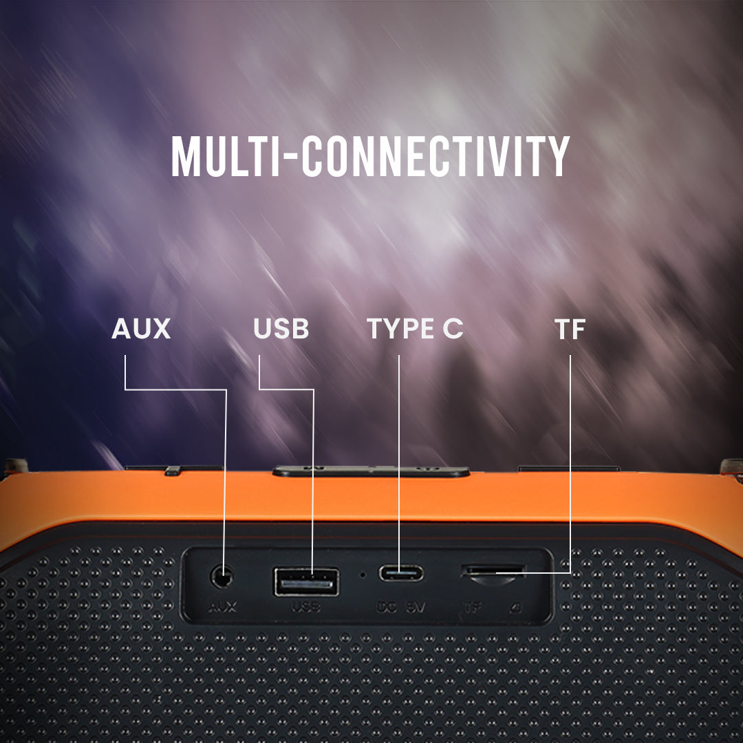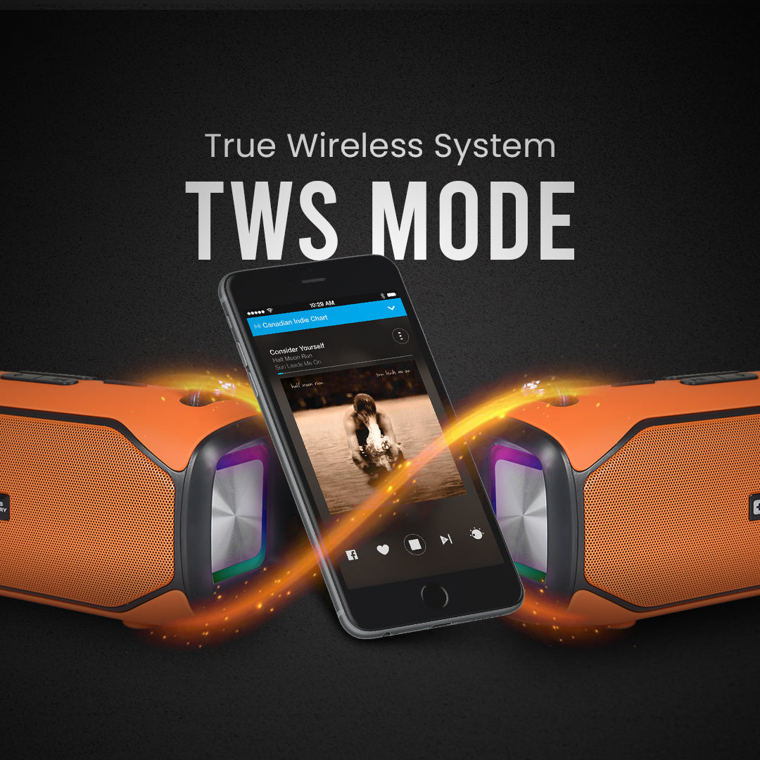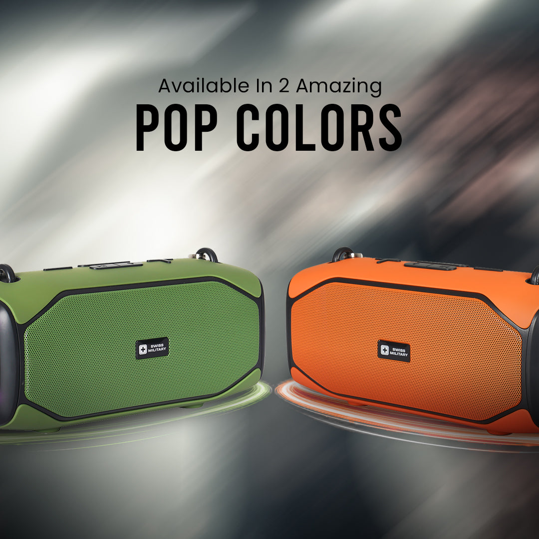 Meet the SM Rapli: Your Sonic Adventure Awaits! With a 20W BT-Speaker and TWS mode, it's double the fun. Bluetooth 5.0 ensures seamless connectivity, while a mighty 57mm driver delivers pure sound power. Keep the party going for 10 hours with vibrant RGB lights and FM radio. Available in Military Green and Orange Black – your tunes deserve to stand out!