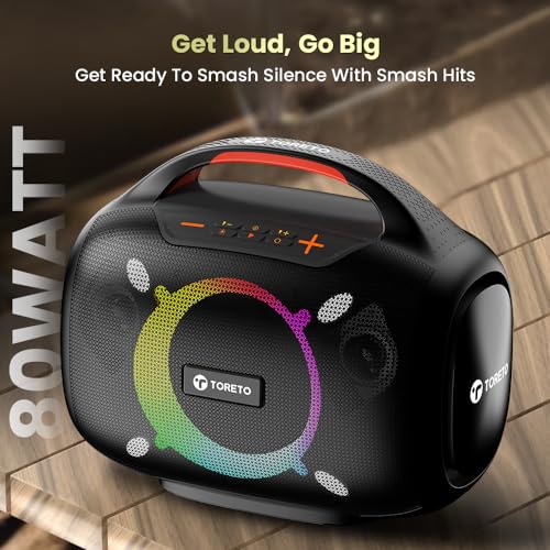Powerful Sound Output: The Toreto Smash-2 Boom Box boasts an impressive 80 watts of power, ensuring a robust and dynamic audio experience suitable for any party or gathering.