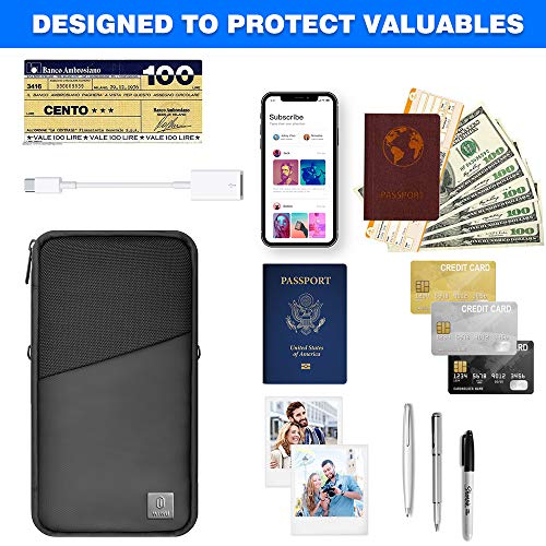 Product Description ABOUT THE BRAND WIWU is a brand serving quality and utility with style. Due to which our product and consumers always stand out. The problem is no one wants to buy inferior and boring things which make you feel cheap and ashamed of showing them to your friends. WIWU’s products attract the eyes of the onlooker and compel them to be friends with you. RFID Blocking Passport Holder The travel document organizer has two separate zipper compartments .A pocket on the front for passport ,card and money .It designed with 4 passports pouches and bank cards pocket, a zipper pocket for coins, a large zipper pocket for cash and flight tickets. The another back pocket for storing mobile phone ,documents and other large items. Made of durable, waterproof, tear-resistant and high-density nylon fabric to prevent scratches. Inside RFID blocking shield material helps prevent personal account information disclosure. High-quality fabrics and smooth zippers make you have a pleasant travel. Key Points: Product Dimensions: 25.4 x 15.24 x 5.71 cm; 318 Grams Colour: Black Style: Rfid Wallet Material: Nylon Special Feature: Rfid Blocking,Waterproof This travel document organizer is a must-have accessory for traveling or business trip, also great for daily use. Come with detachable strap on the wallet, you can hang around your neck and added a strap for hand grip. Best gift for your friends and family. compact and portable for traveling. Lightweight and Easy to Carry, Simple compact design but portable and useful. You can simply hang it on your wrist and neck by the removable strap. Suitable for vacation, home, business trip, camping, etc. We want to present you thought out to the smallest details WIWU Travel document Organizer. It is an indispensable accessory on any trip, especially if you have a large family or you are travelling in a group. Large enough to hold documents for up to 8 people. Laptop Shoulder Bags Laptop Shoulder Bags Tablet Shoulder Bag Tablet Shoulder Bag Buying Options Add to Cart Add to Cart Add to Cart Customer Reviews 4.6 out of 5 stars 55 4.6 out of 5 stars 43 4.2 out of 5 stars 622 4.5 out of 5 stars 631 Price — ₹2,199.00₹2,199.00 ₹2,399.00₹2,399.00 ₹2,299.00₹2,299.00 Light weight ✓ ✓ ✓ ✓ Attractive and Trendy ✓ ✓ ✓ ✓ Durable ✓ ✓ ✓ ✓
