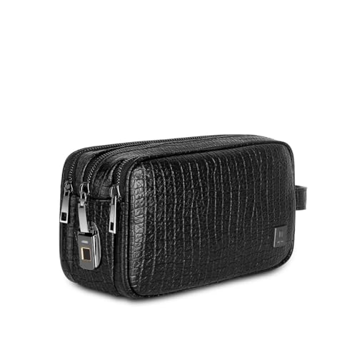 Introducing the wiwu Salem Pouch fingerprint Lock Leather pouch, a sleek and sophisticated accessory that combines style and security. Crafted from premium leather with an embossed texture, this pouch exudes luxury and sophistication. Its compact size makes it perfect for carrying your essentials, while the fingerprint lock ensures your belongings remain safe and secure. Indulge in the convenience of quick access with the fingerprint lock, ensuring your valuables are always within reach yet protected. Has Three compartments(1 finger print lock zipper compartment, 2 non finger print lock zipper compartment)Air Travel Safe. Experience the perfect blend of fashion and functionality with the wiwu Salem fingerprint Lock Leather pouch.